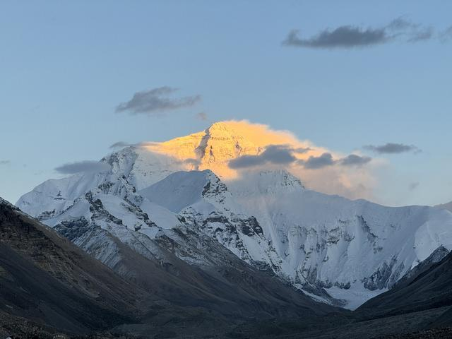 珠峰最有名的景致莫过于“日照金山”。在清晨第一缕阳光或者夕阳最后一抹阳光的照耀下,珠峰沐浴在金色光辉中,尽显壮丽风采。如果恰逢山顶还有旗云飘过,那将是无与伦比的双重震撼。不过,要看“日照金山”不仅要赶早还要赶巧,若天气不好则不容易看到。为此,一些旅客选择在景区内住宿,缩短前往观景台的路程并寻找最佳的观景时机。