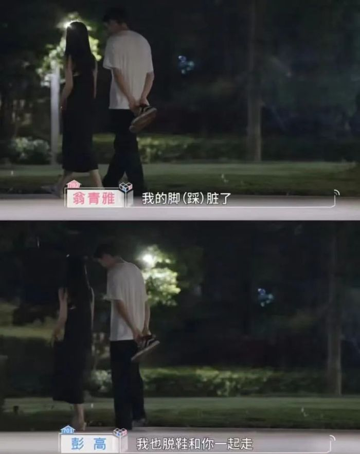 而嘉宾们在节目里赛过偶像剧的表现也正给CP粉持续磕糖提供了源动力,比如彭高看着翁青雅时的星星眼、痴汉脸,以及脱鞋陪着翁青雅走泥路、那一句“期待我们在肯尼亚相遇吧,青雅”,都能被网友一一被划入恋综名场面。