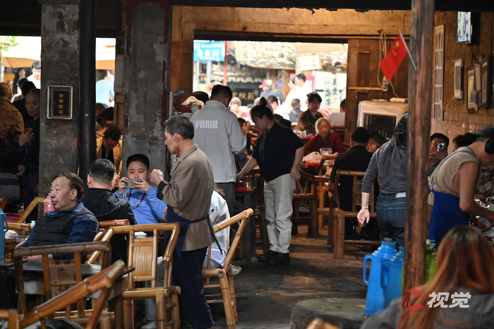10月4日,双流彭镇的老茶馆人气爆棚,许多游客来到这里,感受“人间烟火气”。