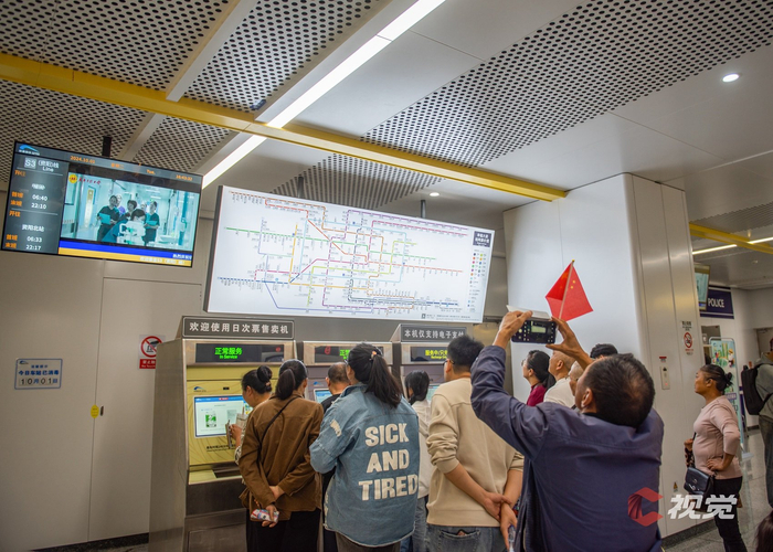 国庆期间,许多市民来到新开通的轨道交通资阳线,体验新线便捷。