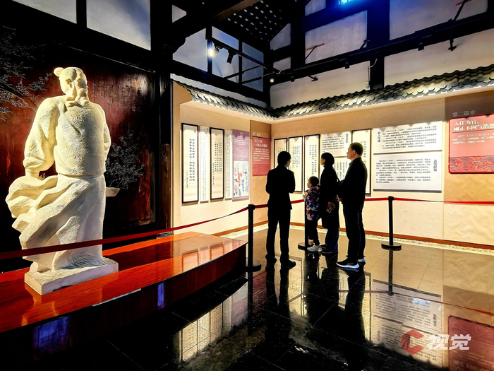 10月5日,游人正在参观位于崇州罨画池内的陆游祠。