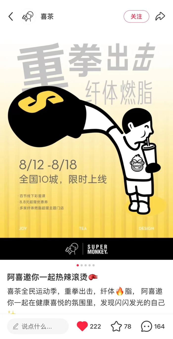 当然这一问题存在于所有做IP联名的品牌上,包括茶饮品牌。被称为“联名之王”、靠IP联名打出圈的喜茶,去年还通过与FENDI、周大福等品牌的联名,掀起了社交平台的讨论热度,也被反复当作成功案例提及,但今年声量明显有所降低。