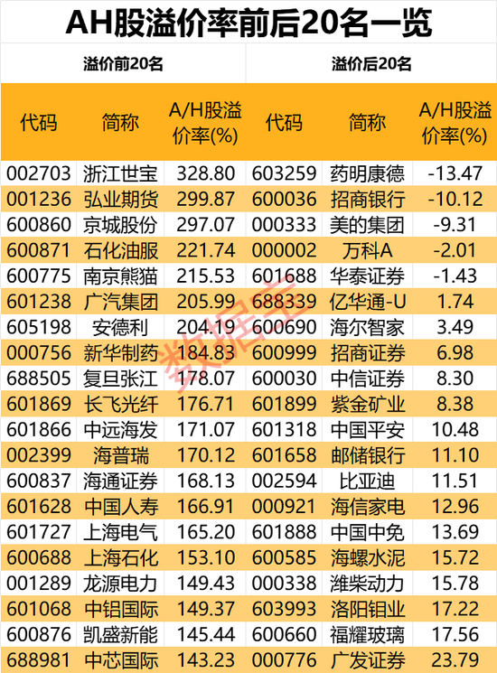 港股新变化:AH股溢价率进一步走低,5股已倒挂