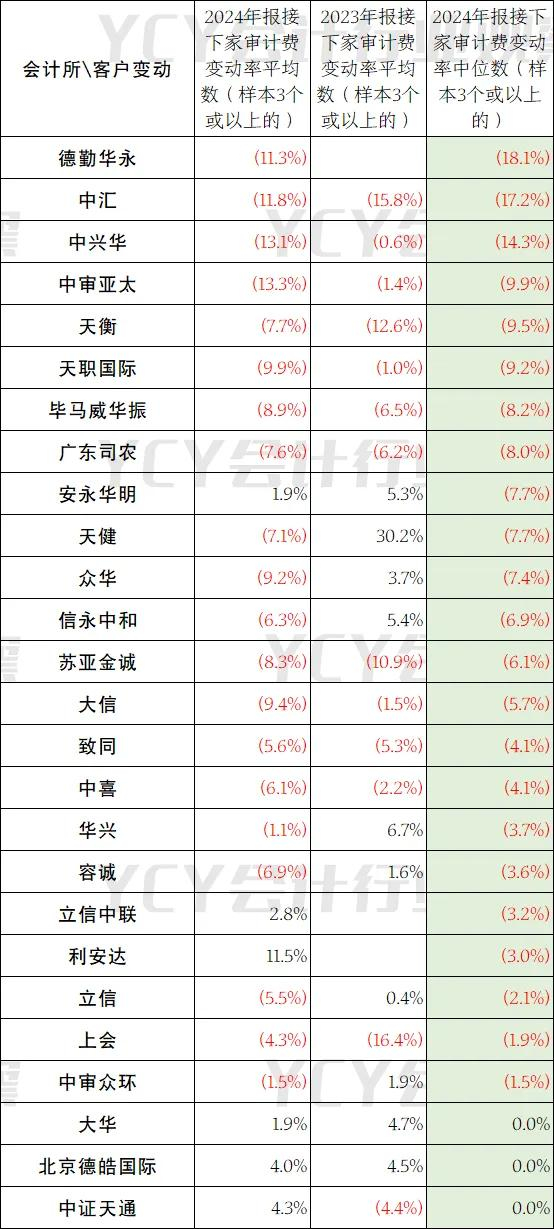 分会计所看,有3个或以上样本的会计所,其接2024年报审计改聘的审计费中位数是下降或持平,并没有增长的。下降最多的是四大会计所德勤华永会计所,审计费用变动中位数为下降18.1%;毕马威华振、安永华明也是分别下降了8.2%和5.8%。这样的下降不止是四大会计所,包括天健、立信,其他会计所也是普遍地在接改聘的时候下降了审计费。即便是在以前的访谈中公开宣传“不允许降费”的会计所也在降低费用接下家了。注会行业急需评估其存在的价值,评估其服务的价格。