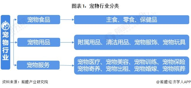近年来宠物行业的产业链逐渐清晰、完善,子行业种类日益丰富。宠物行业主要包括宠物食品、宠物用品、宠物医疗、宠物美容、宠物训练、宠物保险以及宠物殡葬等一系列商品和服务链条,其中,宠物商品、宠物服务是宠物行业主要的两个子行业。