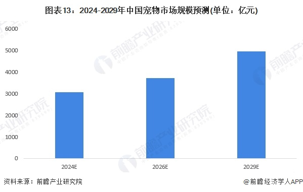 随着我国人均收入水平不断增加,国民生活水平提高,生活方式随之改变,人们的休闲、消费方式也在发生变革。伴随老龄化、城镇化等人口特征,“孤独经济”的发酵以及“空巢青年”、“空巢老人”等群体背后巨大的情感空白,作为情感消费属性的宠物经济具备产业升级逻辑,市场潜力巨大。预计未来几年冲过宠物行业市场规模CAGR约10%,到2029年中国宠物市场规模或突破4900亿元。