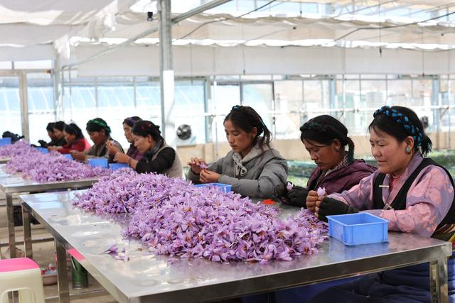 另一方面,藏红花的种植也有劳动密集型的特性。援藏萨迦小组组长、萨迦县委常务副书记、常务副县长沈佳梁说,每年十月至十一月是藏红花种植的关键时期,特别是栽种、采花这两道工序,用工量非常大,并且与西藏传统农业农忙时间不冲突,因此能带动当地很多群众劳务增收。在平时,比如平整土地、浇水施肥等相对轻松简单的工作环节,则可以为村里的留守老人和妇女提供更多稳定的就业机会。