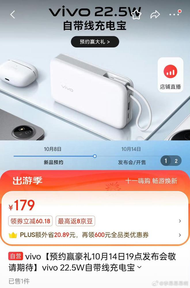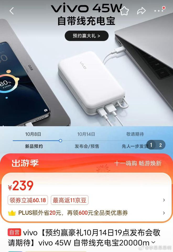 vivo 22.5W / 45W 充电宝曝光,预计随 X200 系列手机亮相