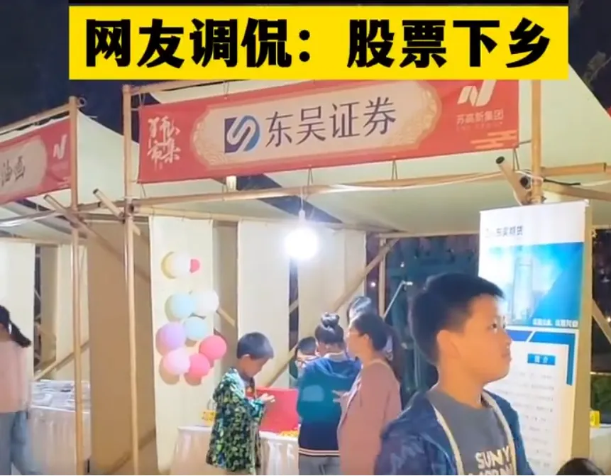 据证券时报报道,国庆假期期间,苏州一夜市出现了东吴证券、广发证券的券商摊位,也引起了路人的广泛关注。有网友调侃:股票下乡。不少网友认为这是券商为了抓住股市火热的机会,积极开拓市场的一种创新尝试。