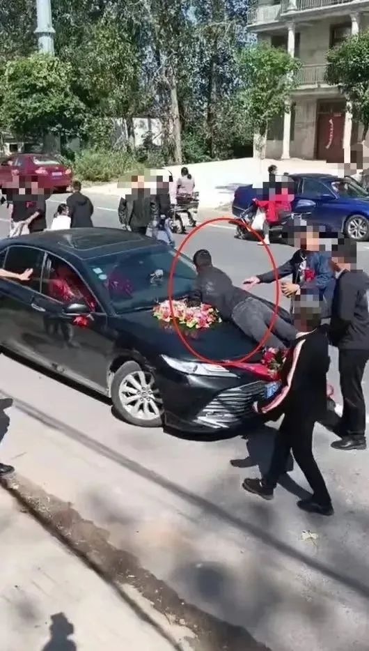 这件事最初引发关注源于网友在短视频平台发布相关视频。视频显示,在一个结婚接亲现场,新郎先是将新娘从娘家房屋拉出,穿过人群带到车上,并指示司机开车,但很快有一名疑似新娘男性家属跟了上来,直接趴到车辆引擎盖上,阻碍车辆前行,旁边一直有人来劝阻未果。
