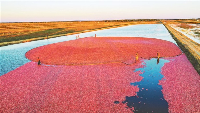 抚远蔓越莓 一片“红海”映东方