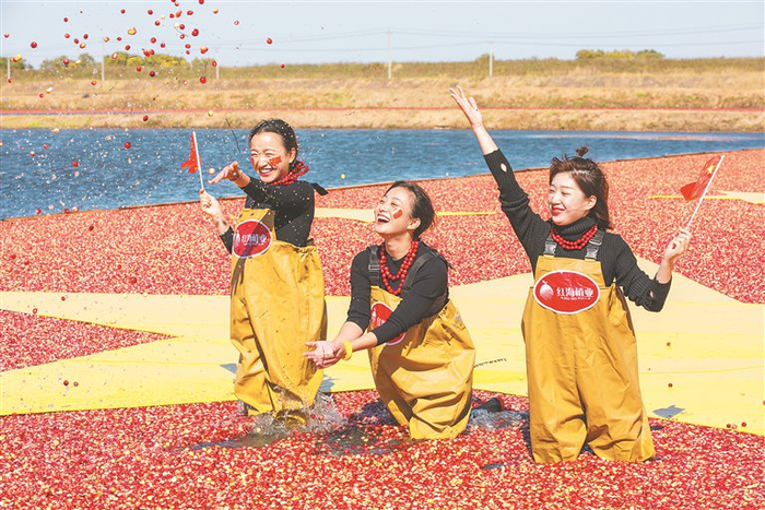 “去年,我们鲜果产量约2700吨,产值7000余万元。今年蔓越莓破圈传播后,销售期比往年提前一个月结束。”红海植业有限公司总经理李峰说,预计今年基地鲜果产量将达3000吨。