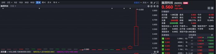 其中,脑洞科技早间一度暴涨近600%,此后维持高位震荡。截至发稿,该股涨幅超过320%。脑洞科技主要从事电子及电气零部件的生产和销售,同时也涉及宽带基础设施建设和为智能场域应用程序(包括智能家居、智能园区及智能社区)提供综合解决方案。该公司的产品主要用于智能消费电子设备,如移动电话、显示器、LED电视、便携式电子设备及电源设备。公司的主营业务包括自行生产的电子及电气零件及部件,如二极管、三极管、整流管及突波吸收器,以及从第三方供应商采购的电子及电气部件及零件。脑洞科技的产品主要服务于韩国及中国知名消费类电子品牌的OEM/ODM生产商。
