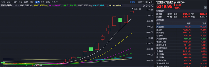 此外,恒生科技指数涨势更猛,早间最大涨幅超过4%,午间休市前涨幅依然达2.35%。