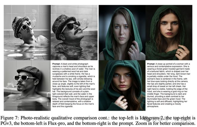 相比之下,PGv3在遵循提示和生成真实图像方面都表现出色,还展现出明显优于其他模型的电影质感。