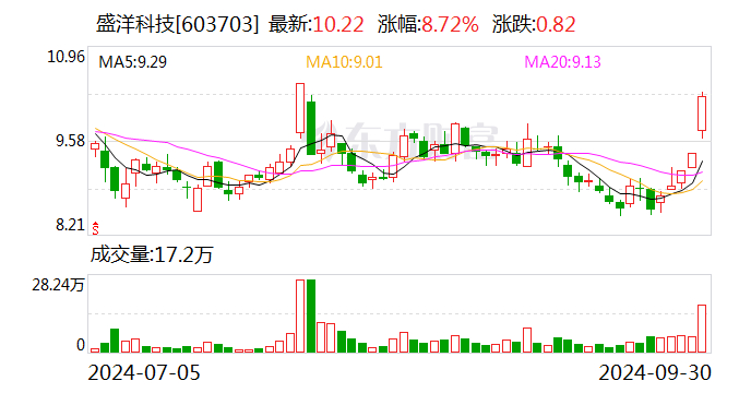 据了解,盛洋科技合作伙伴信息发展正全力推进北斗终端大规模应用。9月15日,信息发展发布公告,公司与前海粤十、交信颜石等共同出资设立了国交粤十(上海)信息科技有限公司(以下简称“国交粤十”);9月28日,国交粤十亮相上海虹桥国际中央商务区(闵行)重点项目集中签约仪式,正式切入冷链运输交通大数据运营服务。