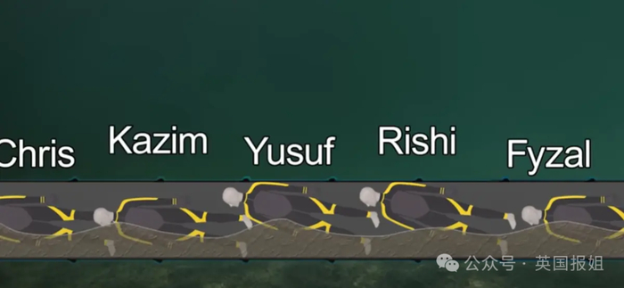 他们通过呼喊确认彼此的状况和位置,最终确定了状况:五个人中,布德拉姆排在第一位,后面依次是阿里、亨利、纳加萨尔和库尔班。