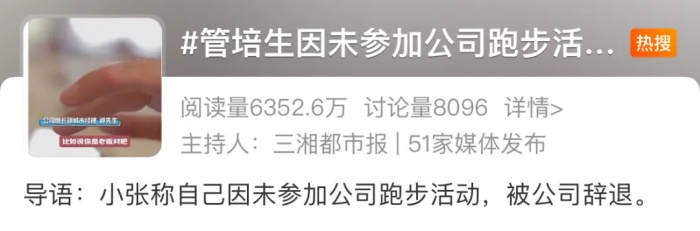 近日,“管培生因未参加公司跑步活动而被辞退”冲上热搜榜,引起广泛关注。