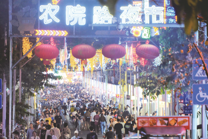 ▶在农院路夜市,感受南宁美食魅力。