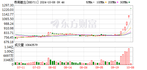 券商股开盘大涨,中信证券东方财富中国银河中信建投中金公司光大证券等50余只券商股竞价全部涨停。