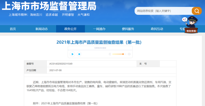 【特别声明】:本篇内容所采用的原始数据均源自权威官方网站,数据客观真实。如相关抽检结果数据经政府有关部门核实及认定后确认有变更事实的,请及时联系本刊。