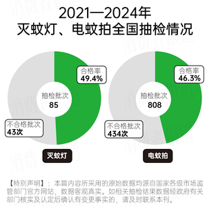 2024年7月,《消费者报道》整理了国家市场监督管理总局及省市级市场监督管理局于2021-2024年发布的灭蚊灯、电蚊拍抽检情况,分析数据并推荐。