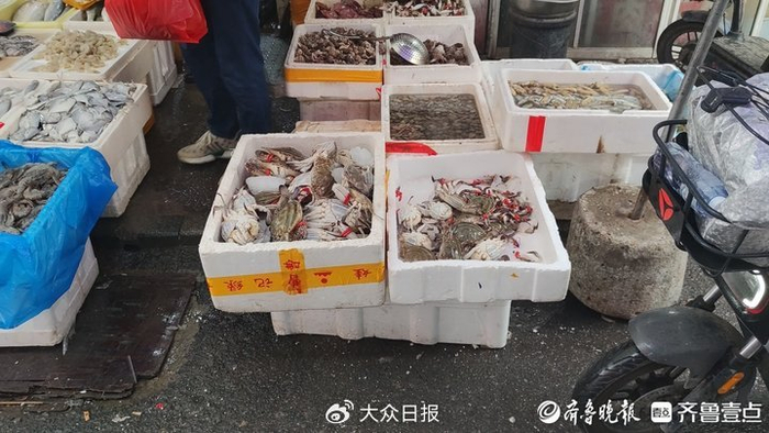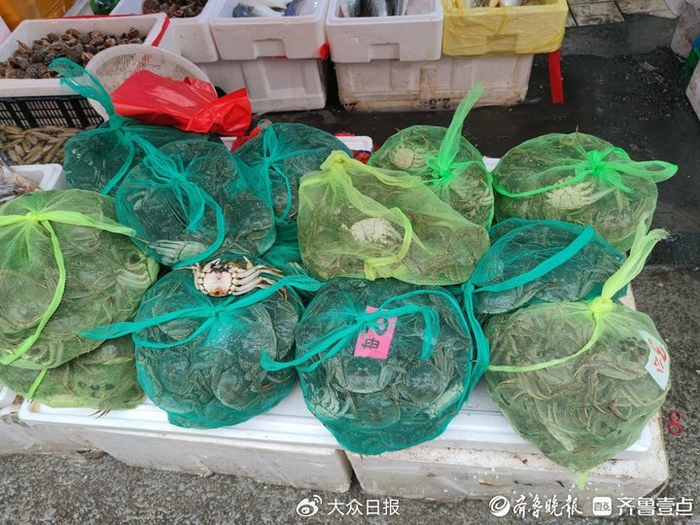 “中秋那阵子,规格大、品质上乘的梭子蟹价格一斤要140-150元,现在75元就可以买到了。”商贩李先生售卖的梭子蟹主要产自青岛、日照、烟台等地,现在每天的销量在一二百斤。