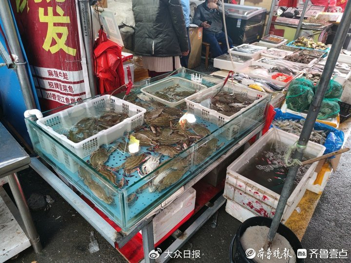 除了大闸蟹,不少市民偏爱梭子蟹。记者在济南海鲜大市场了解到,目前市场上卖的均是产自山东本地的梭子蟹,3两多的公蟹价格为45元一斤,同规格母蟹价格在55元一斤。