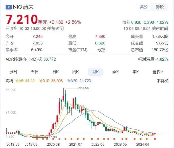 这次抄底,蔚来的股价一路从3.6美元走到了7.2美元左右,近乎翻倍。