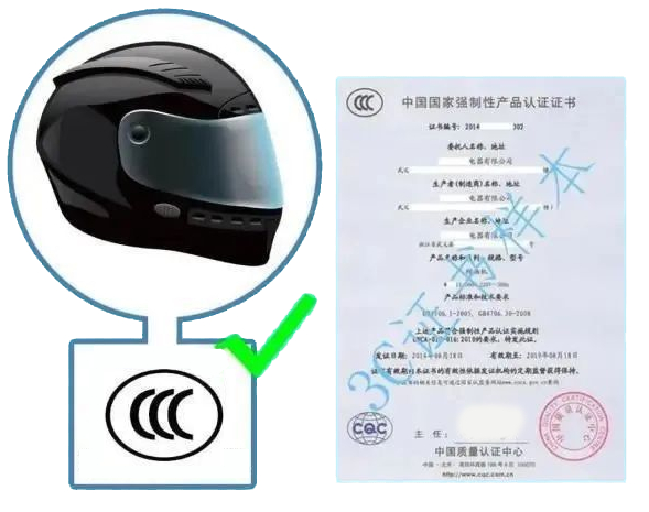 2.查看产品名称、厂名厂址、执行标准、规格型号、生产日期、使用说明等信息是否齐全。摩托车头盔属于强制性产品认证目录产品,应标注中国强制性认证标识(CCC标识)。