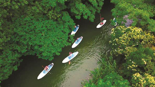 国庆黄金周期间,上海最火的村落在哪里?位于青浦区的岑卜村一定榜上有名。村庄沿河而建,三面环林、一面临湖,树林荫翳、水韵悠然、流萤点点,被众多水上运动爱好者冠以“魔都小亚马逊”的美名。