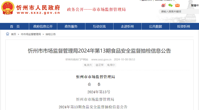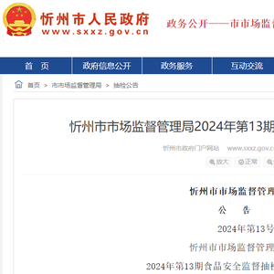 山西省忻州市市场监督管理局2024年第13期食品安全监督抽检信息公告