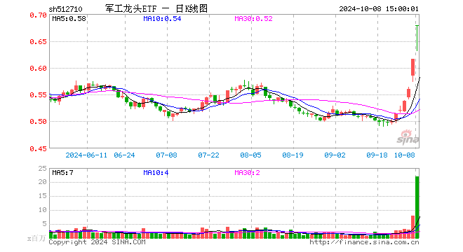 10月8日,富国中证军工龙头ETF(512710)收盘涨10.06%,成交额14.67亿元。