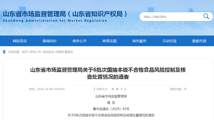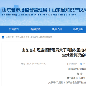 山东省市场监督管理局关于6批次国抽本级不合格食品风险控制及核查处置情况的通告