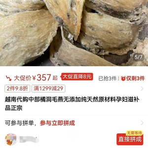 目前,淘宝、拼多多、京东上依旧有数百家店铺在销售问题燕窝,小红书、快手上依旧有数百个账号在宣传、兜售问题燕窝。
