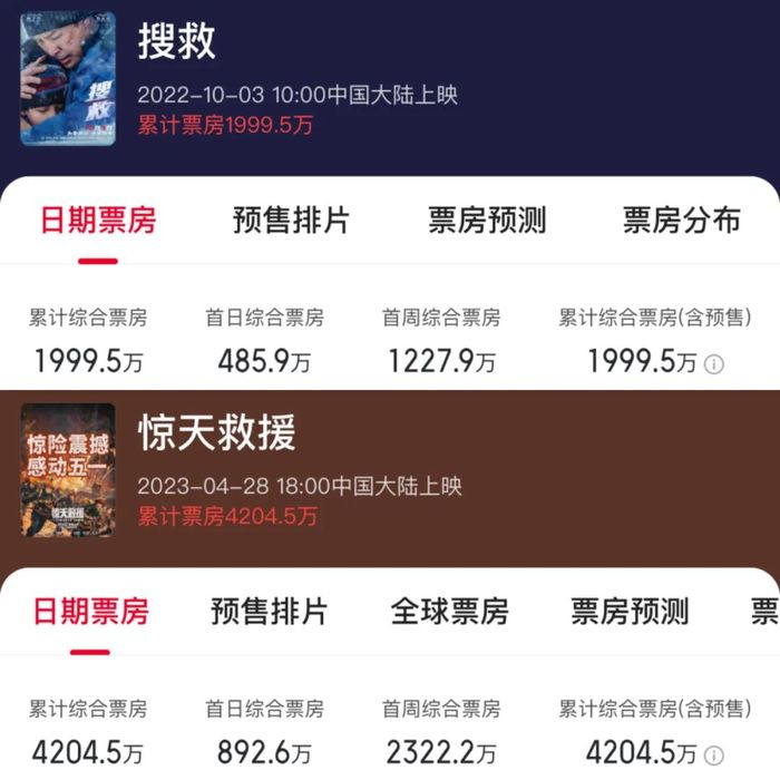 但另一方面,此类故事也面临着千篇一律、难以出新的困境。这导致此类影片很难有票房上的突破,在2020年往后,几部灾难片都很难再突破十五亿票房,《中国医生》十三亿的成绩稍胜一筹,而《紧急救援》与《峰爆》均是徘徊在四至五亿。