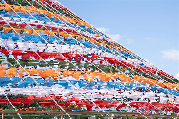 国庆假期第一天,不到上午10点,“月光城”小镇的“五彩哈达”处就已经被拍照打卡的游客包围。“这里在网络平台上很火,五颜六色的经幡从下往上拍出来很震撼,位置又在刚进城的地方,我们刚到香格里拉首先就来了这。”陕西游客朱女士一家四人到此,家中两个女儿在“五彩哈达”旁租赁了藏族服饰并画了藏族妆容,面对高原的第一印象她们兴奋不已。“五彩哈达”管理人员介绍,项目从今年5月开始营业,暑期旺季的时候一天就有800人次参观,在社交媒体上甚至专门有人教授构图技巧,经典的经幡成了时尚的新景观。