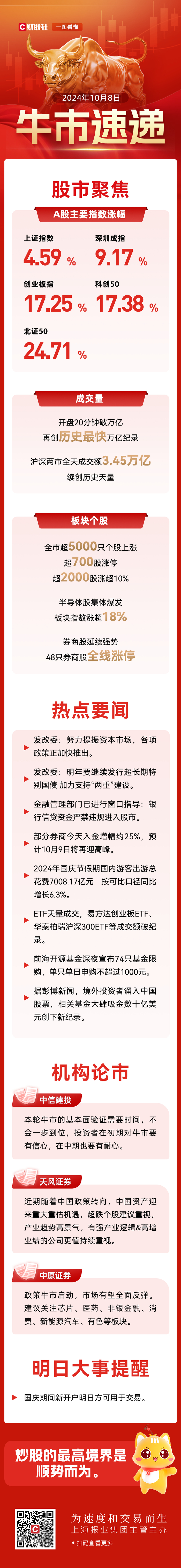 晚报| 巨震!A股各项新纪录纷纷诞生 !入金潮,预计10月9日将再迎高峰!10月8日影响市场重磅消息汇总