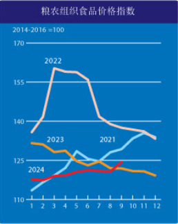 粮农组织植物油价格指数9月平均为142.4点,环比上涨4.6%,达2023年初以来的最高水平。