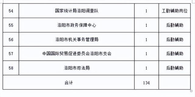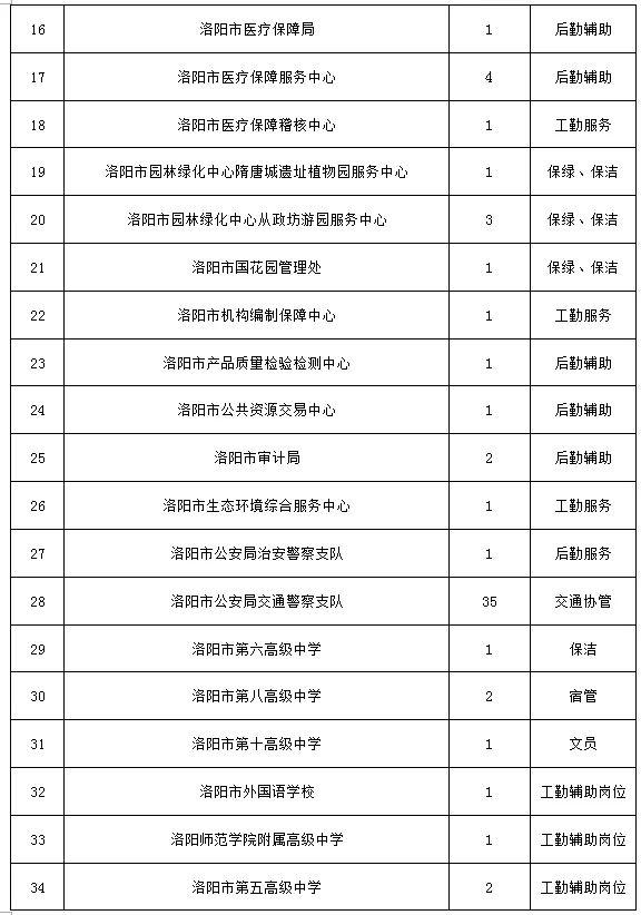 洛阳市人力资源和社会保障局有关负责人介绍,此次公益性岗位招聘会将有58家市直单位参与,提供134个岗位,涵盖交通协管、学校宿管、卫生保洁、文印收发等岗位,帮助就业困难群体实现就业,如洛阳市公安局交警支队招聘35名交通协管员,洛阳市人力资源和公共就业服务中心招聘4名工勤辅助人员等。