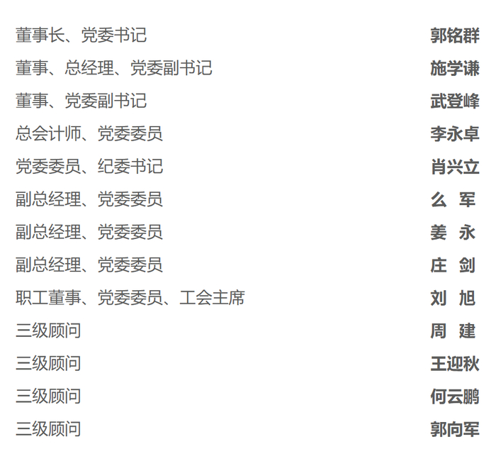 郭铭群曾任国家电网经济技术研究院有限公司董事长(院长)、党委书记,曾担任国网山西省电力公司太原供电公司、国网经济技术研究院有限公司、北京网联直流工程技术有限公司等公司的法定代表人。
