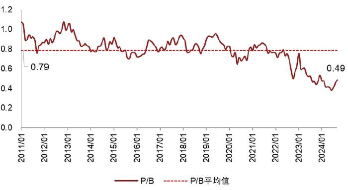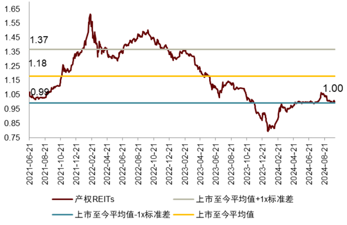 注:1)数据截至2024年9月30日,数据频率为月度;2)取各REITs最新披露的账面价值测算P/B
