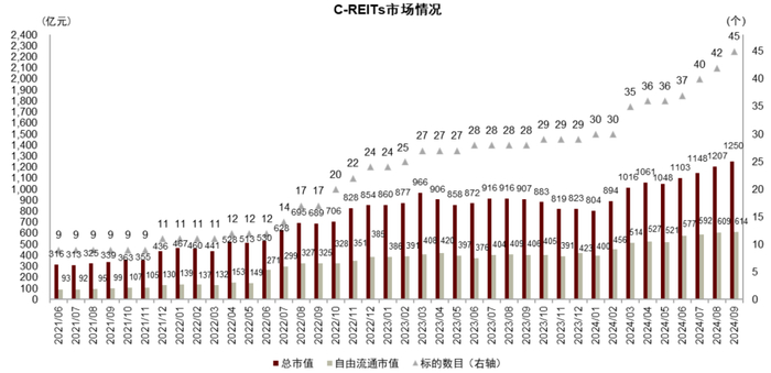 图表1:截至9月30日,C-REITs总市值为1250亿元