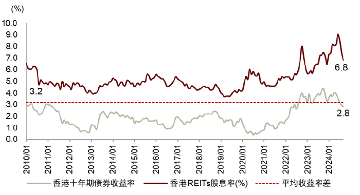 图表27:中国香港REITs股息率与香港政府十年期债券收益率对比