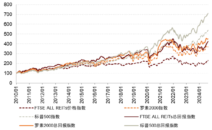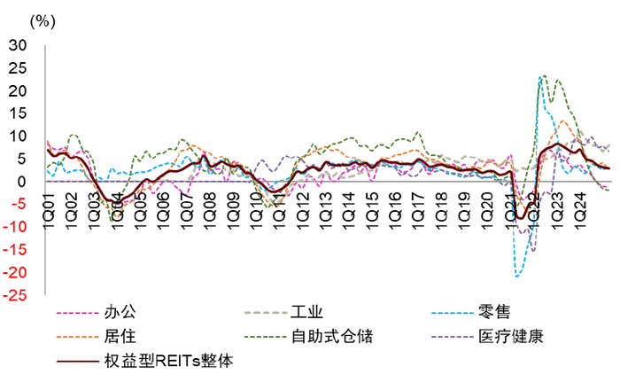 注:NAREIT最新数据截至2024年二季度, 数据频率为季度资料来源:NAREIT,中金公司研究部