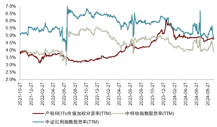 图表13:产权REITs分派率(TTM)与股指股息率(TTM)对比
