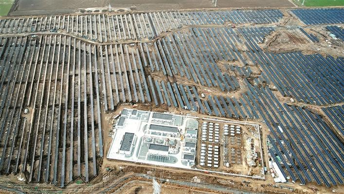 鸟瞰中新建电力集团40万千瓦光伏基地项目(资料图片)。