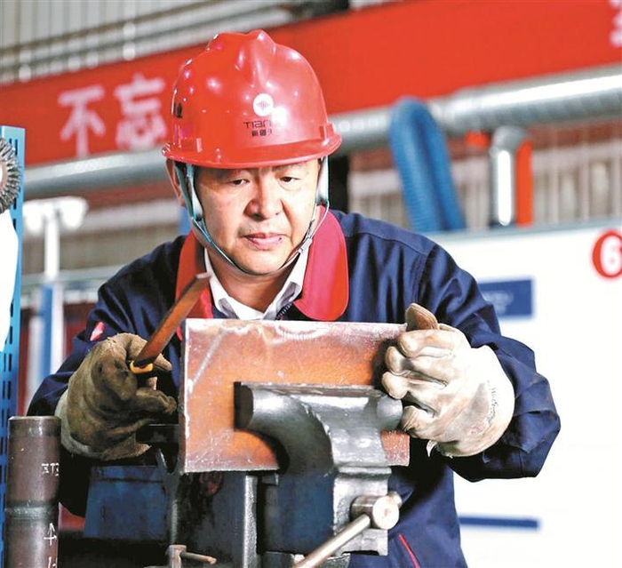 中新建电力集团全国五一劳动奖章获得者、全国焊接技能大师杨建立入选大国工匠培育对象,获评首批“新疆工匠”及首批“兵团工匠”。图为杨建立在焊接(资料图片)。