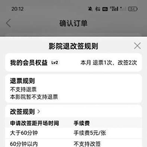 图一:退票规则中注有“本影院暂不支持退票”内容。