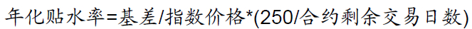 股指期货是指以股价指数为标的物的标准化期货合约,双方约定在未来的某个特定日期,可以按照事先确定的股价指数的大小进行标的指数的买卖。股指期货与现货指数价格的差被称为基差,当股指期货价格高于现货指数价格时,股指期货处于升水,基差为正;反之,股指期货处于贴水,基差为负。股指期货升贴水主要受金融市场利率、股市分红、微观资金成本、套利力量、市场情绪等影响,基差大小会影响股指对冲的成本,基差的变化一定程度上能反映市场对于未来预期的表现。国内目前有上证50、沪深300与中证500指数股指期货。我们计算每日股指期货主力合约的年化贴水率。年化贴水率的计算方式为:
